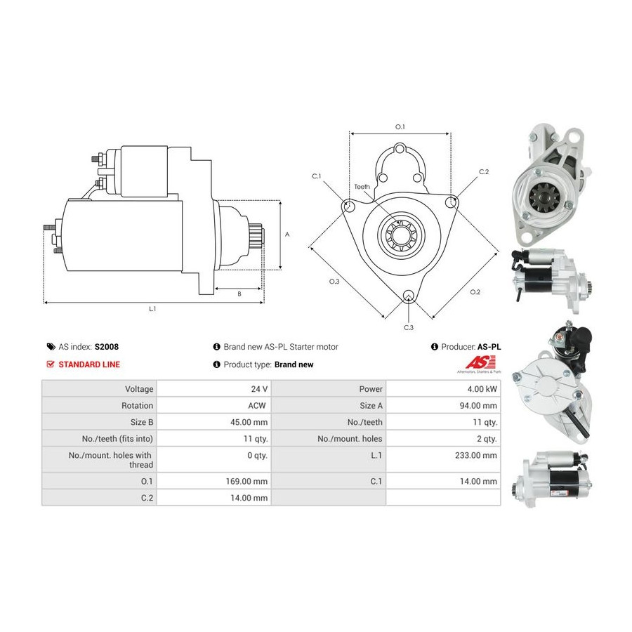| Starter motor power [kW] | 4 |