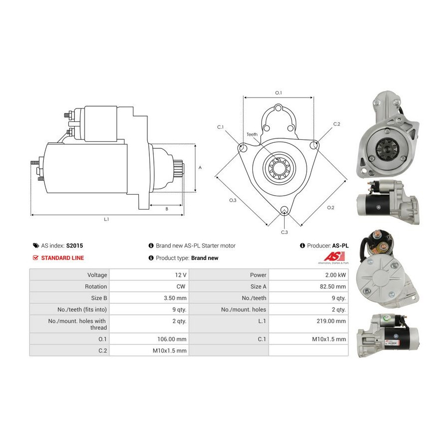 | Starter motor power [kW] | 2 |