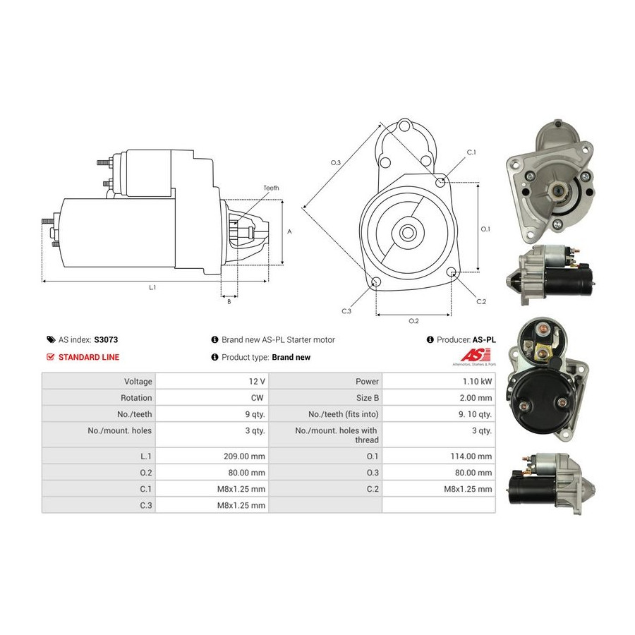 Number of Teeth 9 Number of mounting bores 3 Rotation Direction Clockwise rotation Starter motor power [kW] 1,1 Voltage [V] 12 for OE number D6RA45 Quality Standard line Warranty 2 years New part without deposit Similar products of other manufacturers