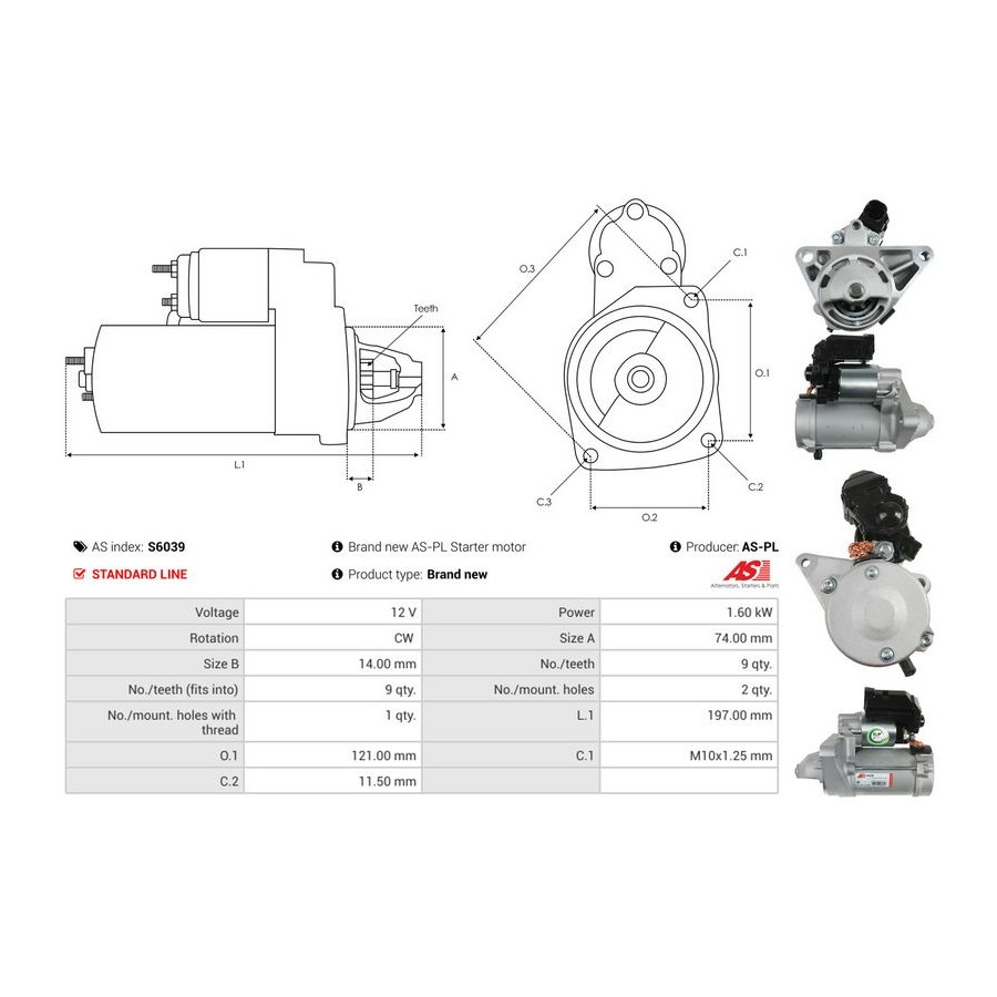 Number of Teeth 9 Rated Power [kW] 1,6 Number of mounting bores 2 Rotation Direction Clockwise rotation Voltage [V] 12 for OE number 4280006190 Quality Standard line Warranty 2 years New part without deposit Similar products of other manufacturers