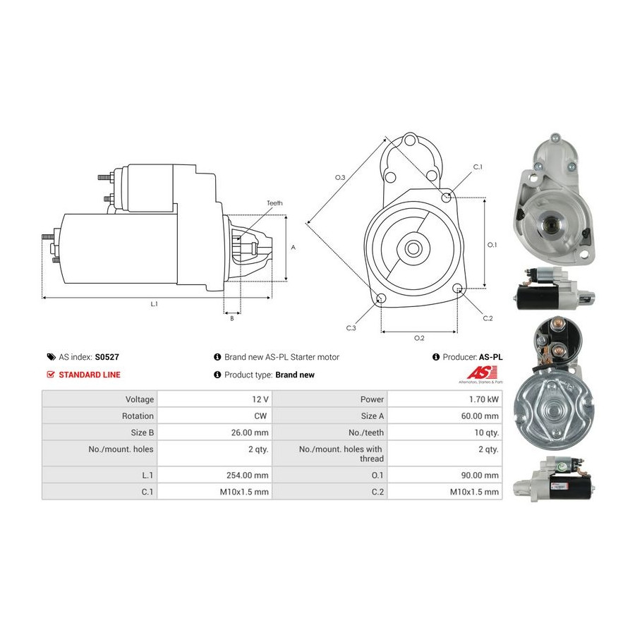 Number of Teeth 10 Rated Power [kW] 1,7 Number of mounting bores 2 Rotation Direction Clockwise rotation Voltage [V] 12 for OE number 0001115106 Quality Standard line Warranty 2 years New part without deposit Similar products of other manufacturers