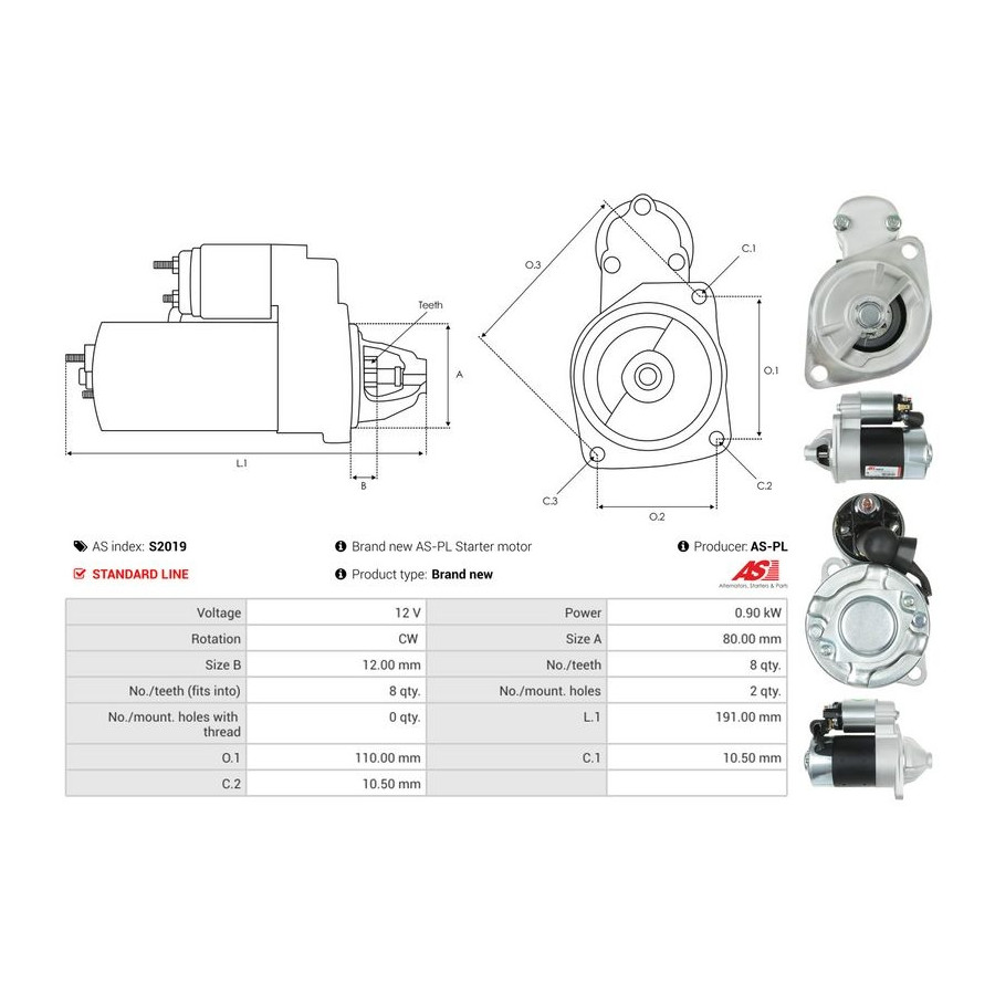 | Starter motor power [kW] | 0,9 |