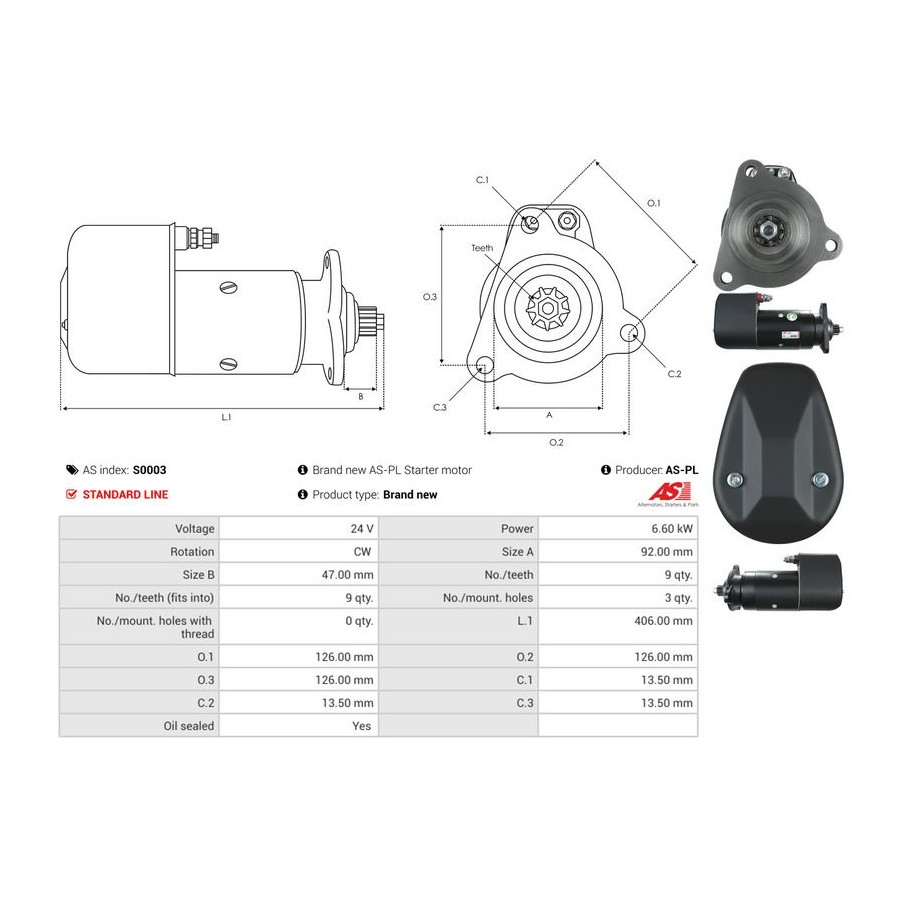 | Starter motor power [kW] | 6,6 |