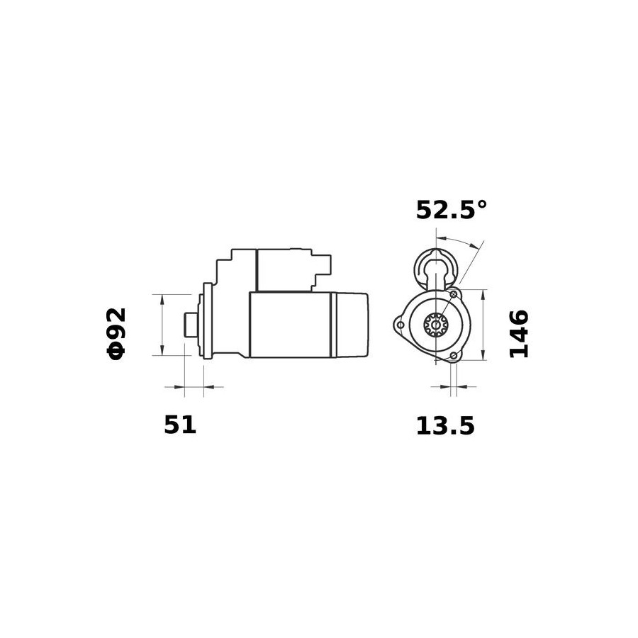 Number of Teeth 11 Rated Power [kW] 6,5 Number of mounting bores 3 Rotation Direction Clockwise rotation Drive With reduction gear Voltage [V] 24 Mounting points diameter [mm] 146,0 Relay function Starter Packaging length [cm] 45,2 Packaging width [cm] 20,60 Packaging height [cm] 15,90 for flywheel depth [mm] 51,0 Warranty 2 years Connecting Angle [Degree] 52,5 Tooth Pitch [mm] 14,46 Net Weight [g] 13500 Flange diameter [mm] 92,0 Hole diameter 1 [mm] 13,5 Similar products of other manufacturers
