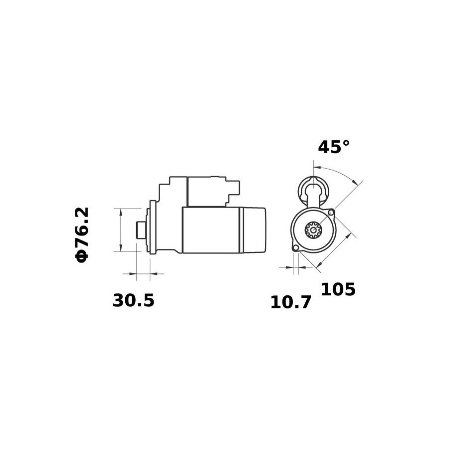 Number of Teeth 9 Rated Power [kW] 2,0 Number of mounting bores 2 Rotation Direction Clockwise rotation Drive With reduction gear Voltage [V] 12 Mounting points diameter [mm] 105,0 Bore Ø 1 [mm] 10,7 Flange Ø [mm] 76,2 Packaging length [cm] 31,8 Packaging width [cm] 16,60 Packaging height [cm] 13,50 for flywheel depth [mm] 30,5 Warranty 2 years Connecting Angle [Degree] 45,0 Tooth Pitch [mm] 14,36 Net Weight [g] 4493 Similar products of other manufacturers