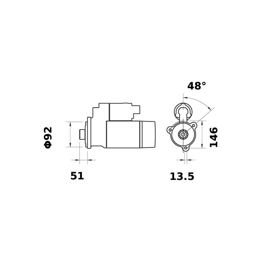 Number of Teeth 10 Number of mounting bores 3 Rotation Direction Clockwise rotation Starter motor power [kW] 4,2 Drive With reduction gear Voltage [V] 12 Mounting points diameter [mm] 146,0 Packaging length [cm] 39,0 Packaging width [cm] 21,50 Packaging height [cm] 18,80 for flywheel depth [mm] 51,0 Warranty 2 years Connecting Angle [Degree] 48,0 Tooth Pitch [mm] 15,42 Net Weight [g] 11100 Flange diameter [mm] 92,0 Hole diameter 1 [mm] 13,5 Similar products of other manufacturers