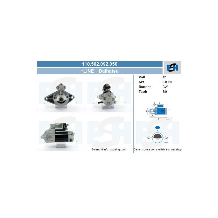 Number of Teeth 9 Rated Power [kW] 0,8 Number of mounting bores 2 Voltage [V] 12 Quality + Line Warranty 2 years Similar products of other manufacturers