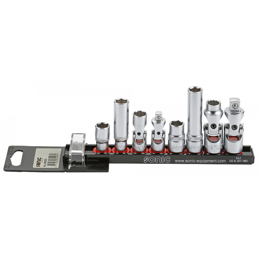 Socket set Porsche 1/4 ", 3/8" 8 pcs. on rail