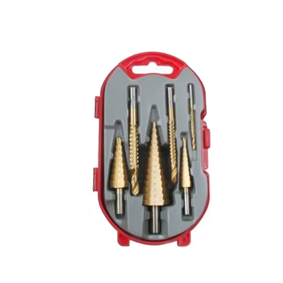 Then this set of step drills is the solution. This set contains 3 step drills (8, 9 and 14 steps) to drill holes in e.g. sheet metal larger and 3 metal drills to drill exactly the desired size. All drills are provided with a titanium coating for 6x longer life.