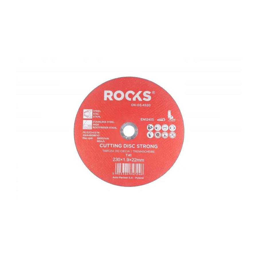 ROOKS cutting and grinding discs are characterized by an excellent mixture and ratio of corundum grains, synthetic resin binder and reinforcing cross fibers.
