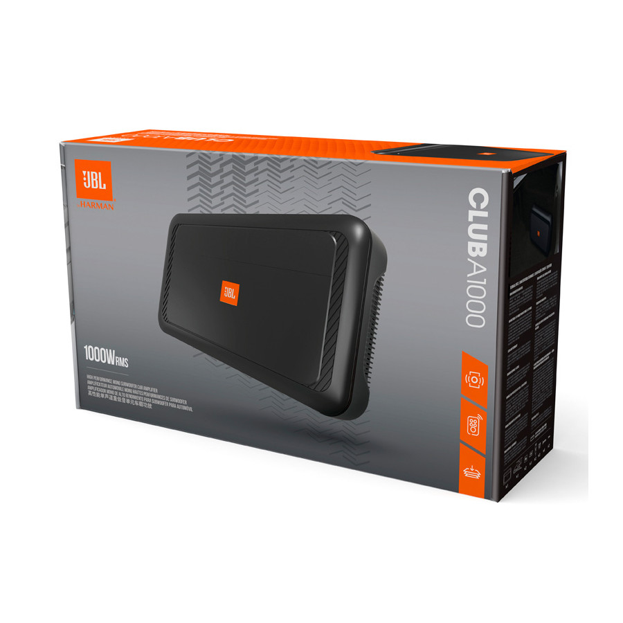 The JBL Club A1000 mono subwoofer amplifier delivers 1000-Watts RMS using a Class D amplifier design to ensure high output and minimum current draw. Speaker-level inputs allow this amplifier to integrate into almost any system, even one using your car's factory radio. You can use the low-pass filter and variable bass boost to maximize the performance of your subwoofer and enclosure, while a phase switch ensures that the bass will blend well with your full-range speakers.
