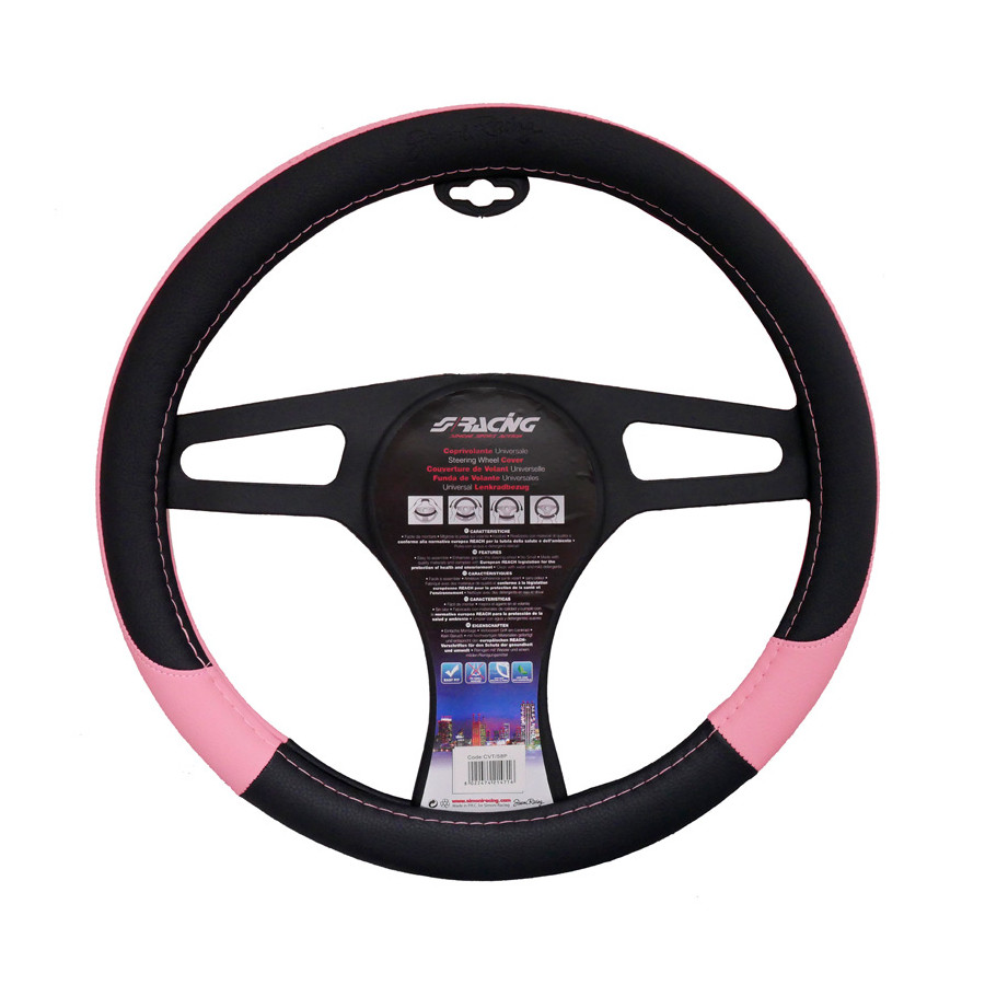 The inside of the steering wheel cover has an anti-slip layer.- Black/Pink