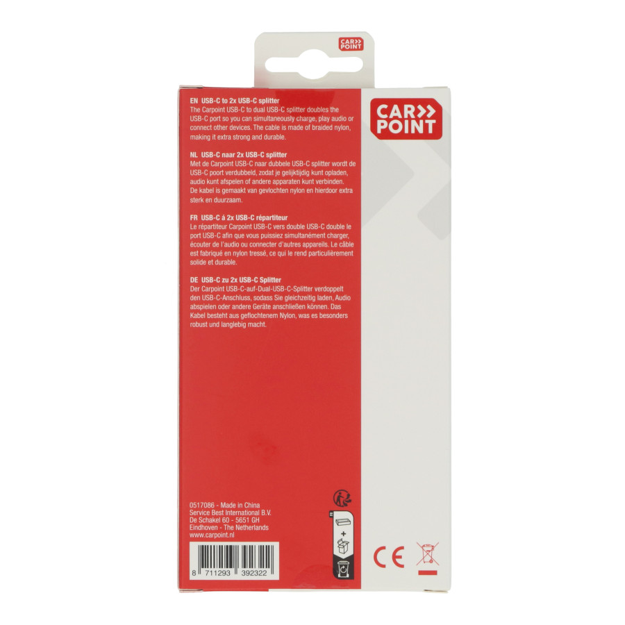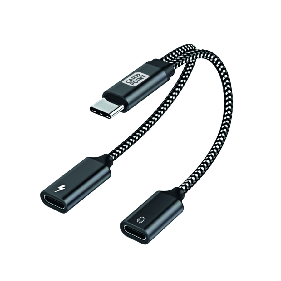 The Carpoint USB-C to dual USB-C cable is a revolutionary 2-in-1 cable. This dual USB-C splitter allows you to simultaneously connect headphones and charge a device with a USB-C port. So you can listen to your favorite music simultaneously and charge quickly with 10 watts of power. Made of braided TPE, the cable is extra strong and suitable for everyday use.