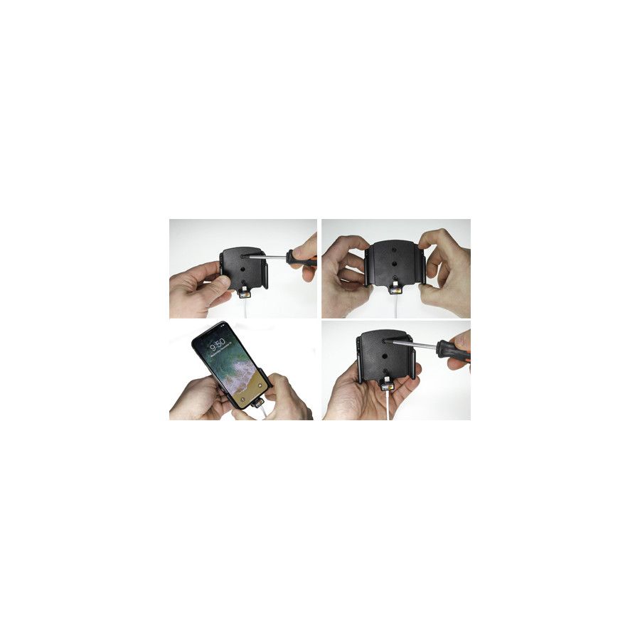 For use with Apple's original Lightning to USB cable. Adjustable holder. Suitable for devices with a skin with the following dimensions: Width: 70-83 mm, Thickness: 2-10 mm.