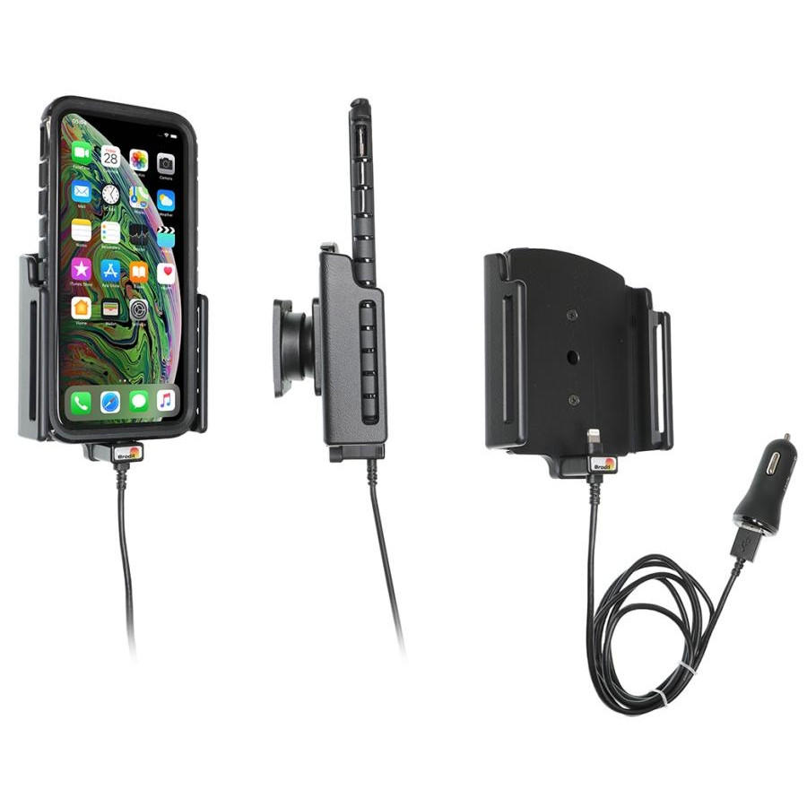 This adjustable holder/charger is equipped with a USB cigarette lighter plug.