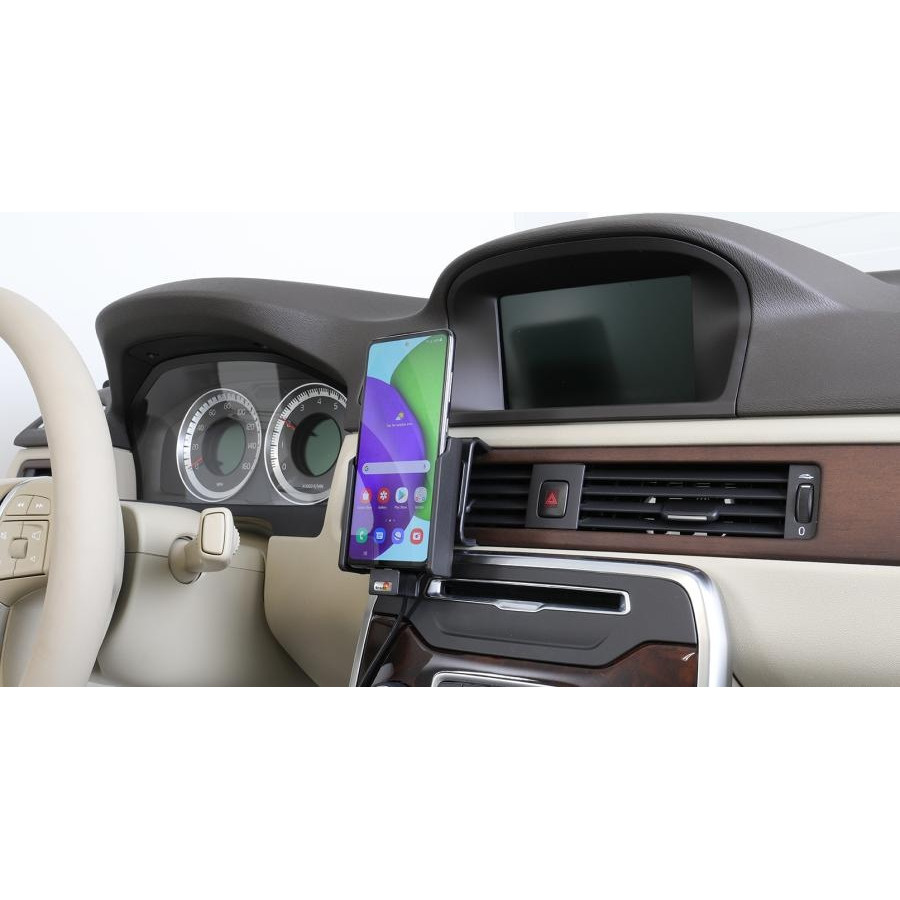 Keep your phone battery fully charged in an active holder, always within reach! Neat, discreet and handy. Custom-made with a perfect, secure fit. Use a USB cable with a sig-plug adapter to connect to the vehicle's USB outlet or 12/24V socket. You have full access to the camera and all buttons when the device is in the holder. It is easy to slide the device into place in the holder, so that it is connected to charging and remove it from the holder when you leave the car.
