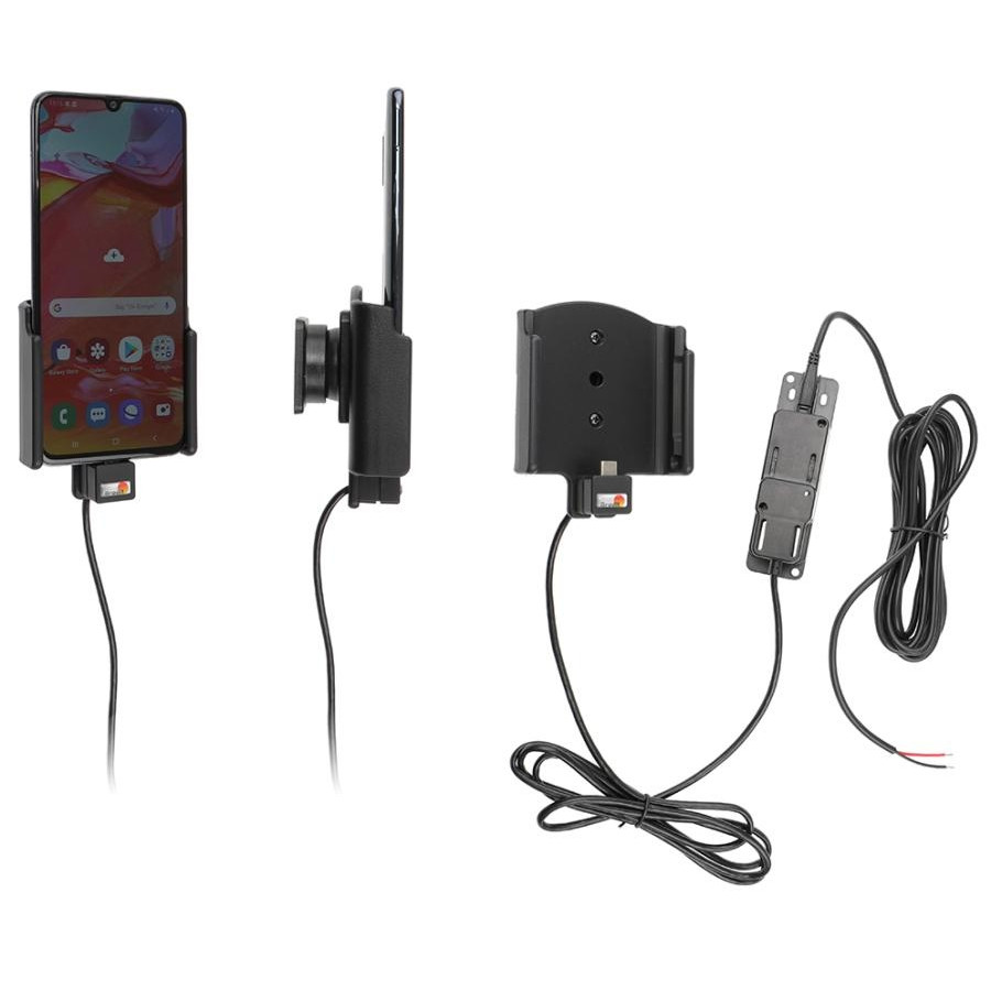 Keep your phone's battery fully charged in an active holder, always within easy sight and reach! Neat, discreet and convenient. Custom made with a perfect, firm fit. For fixed installation. The holder is to be connected inside the dashboard, providing an elegant installation without any cables hanging over the interior. You have full access to the camera and all buttons when the device is in the holder. It is easy to slide the phone in place in the holder so it connects to the charging, and to take it out of the holder when leaving the vehicle.
