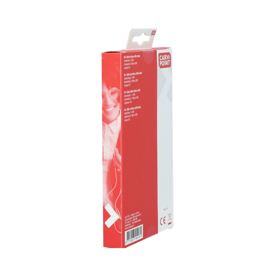 With this Carpoint USB to Micro USB connection it is possible to charge a Smartphone, tablet, navigation system with a Micro USB connection with a PC, wall charger or other device with a USB connection. This cable is suitable for all devices with a Micro USB connection. The charging cable supplies a current of 2A and has a length of 2 meters.