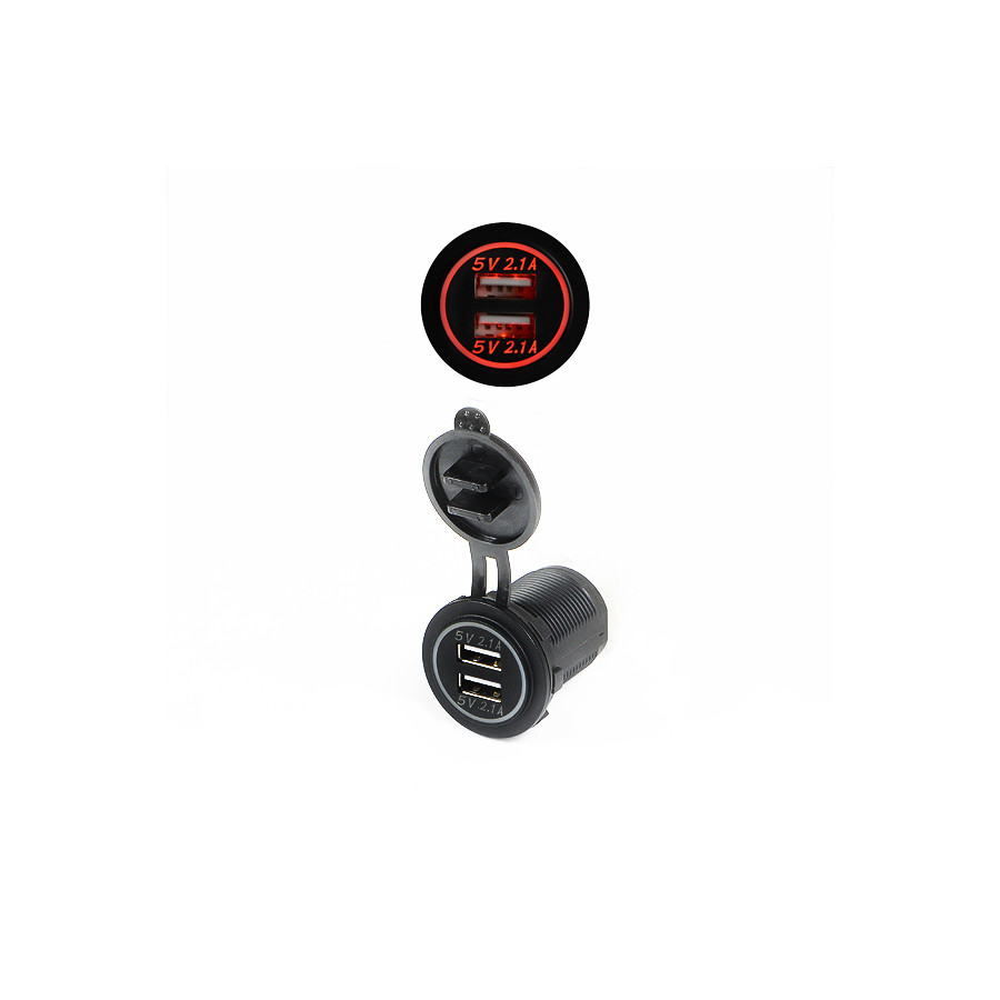 Dual USB car charger 12V/24V 4.2A / Red (Bulk)