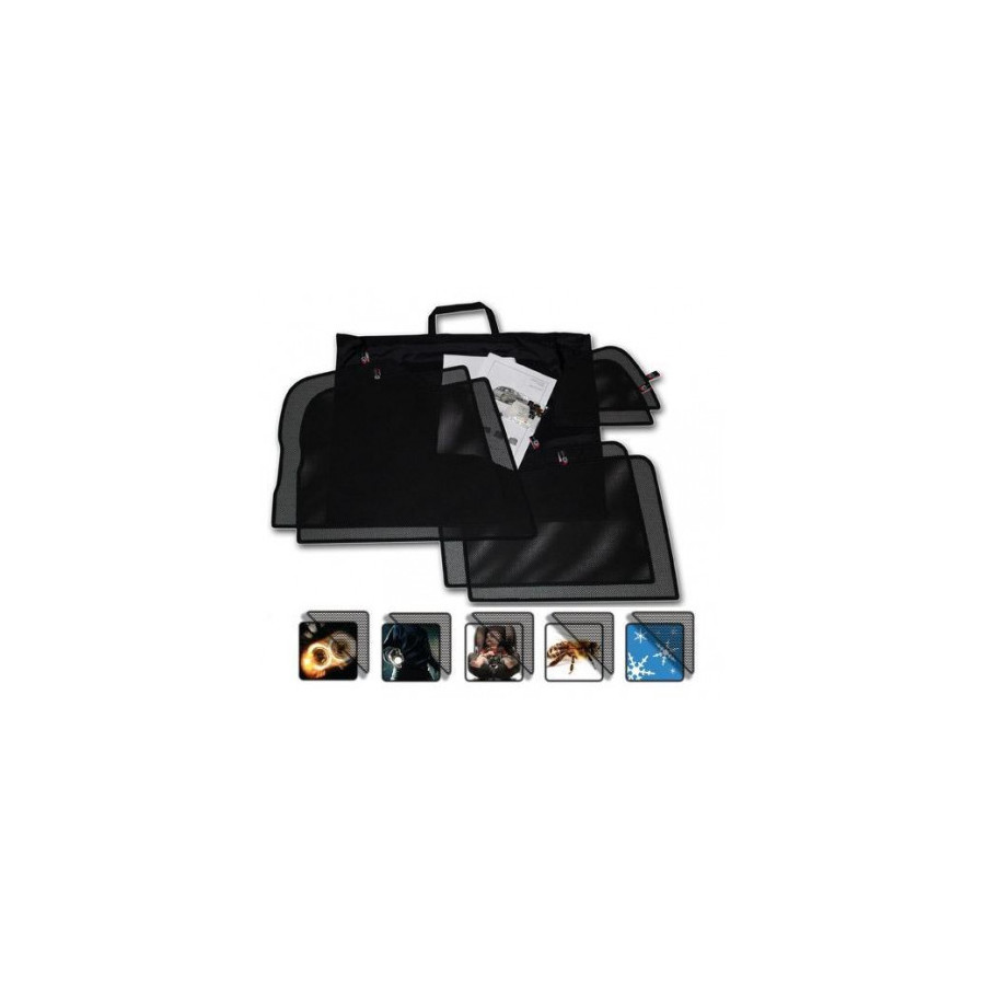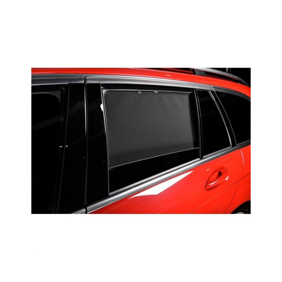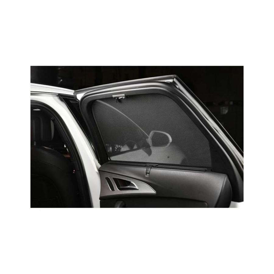 Set of ready-made Car Shades sunblinds, perfect during the beautiful summer weather, long holiday trips and especially for your passengers. The sunshades keep the bright sun out and the specially woven fabric structure gives your car a nice discreet appearance, your windows get the look of tinted windows. You simply click the Car Shades between your window styles and remove them just as easily.