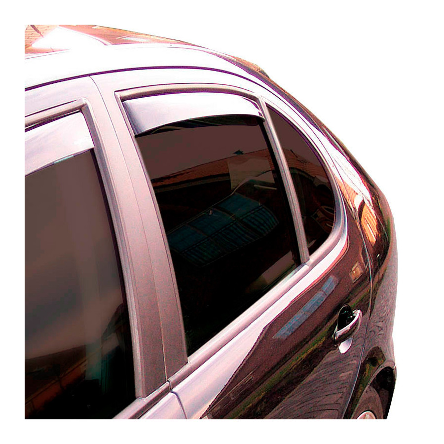 The side wind deflectors prevent rain or snow from entering through the window for longer. This allows you to drive with partially open windows without being bothered by bad weather. They also reduce wind noise when driving with the windows open. This is also an ideal solution for smokers. The side wind deflectors have a unique fit and are custom-made specifically for your car, ensuring a precise and perfect fit.