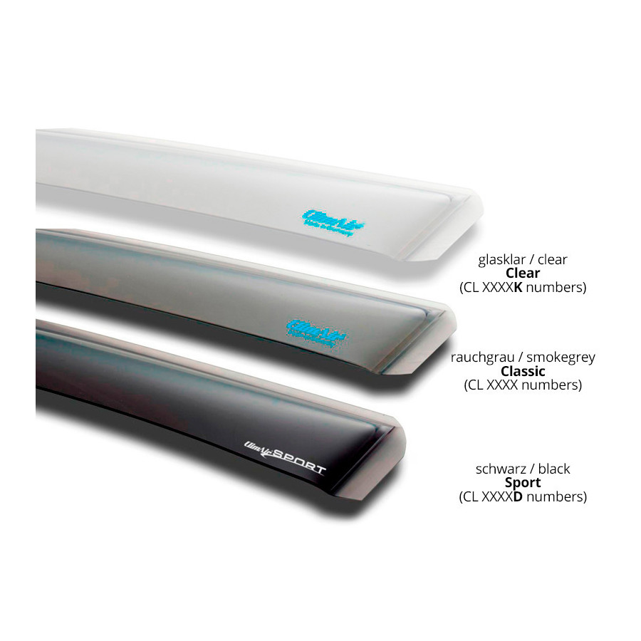 Rain and wind deflectors provide optimized ventilation of the vehicle interior and contribute to your driving comfort. The high-quality cast acrylic glass ensures a non-porous surface, optimal aerodynamics, and, of course, a sporty appearance.