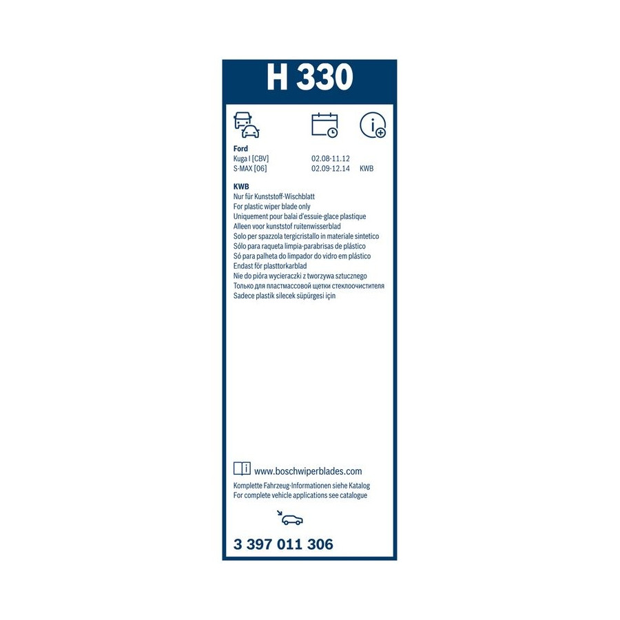 - Innovative Bosch wiper rubber technology: for better, quieter and longer wiping performance