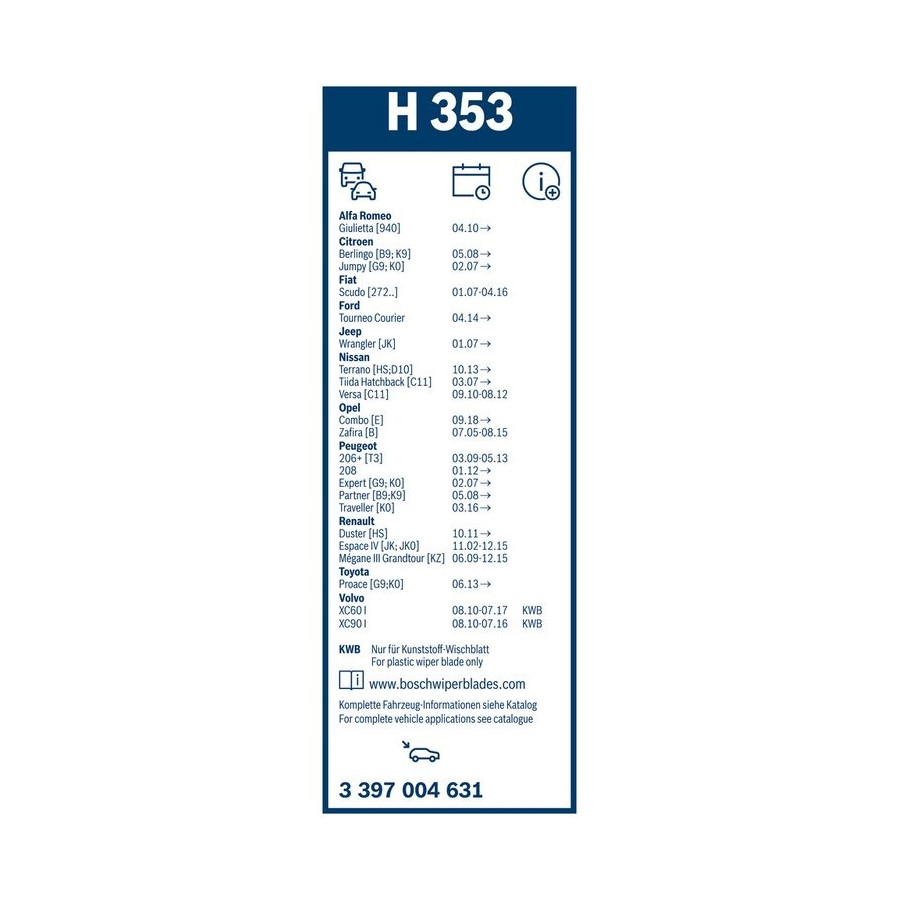 Bosch delivers high quality auto parts of original quality. Many vehicle manufacturers rely on new vehicles on Bosch products for the first time. As well as workshops and service points that want their customers to offer high quality maintenance and repairs.
