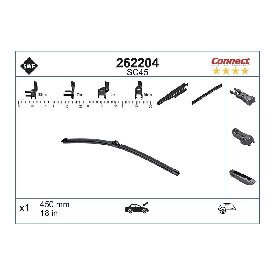 Length [mm] 450 Quantity 1 Wiper blade type Flat wiper blade Wiper type Flatblade Length [in] 18 Warranty 2 years Left / right steering For left-hand drive vehicles Similar products of other manufacturers