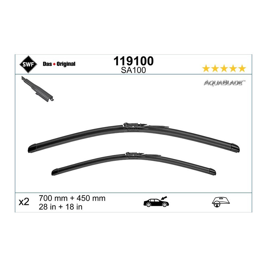 | Wiper blade type | Flat wiper blade |