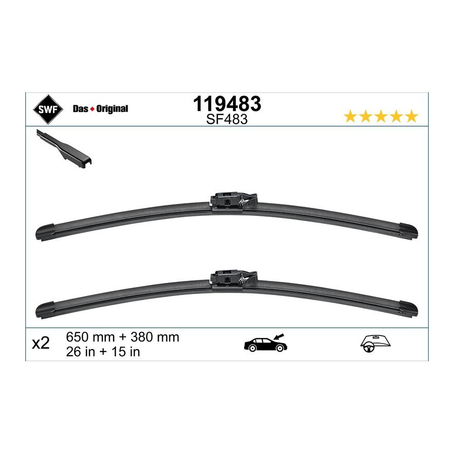| Wiper blade type | Flat wiper blade |