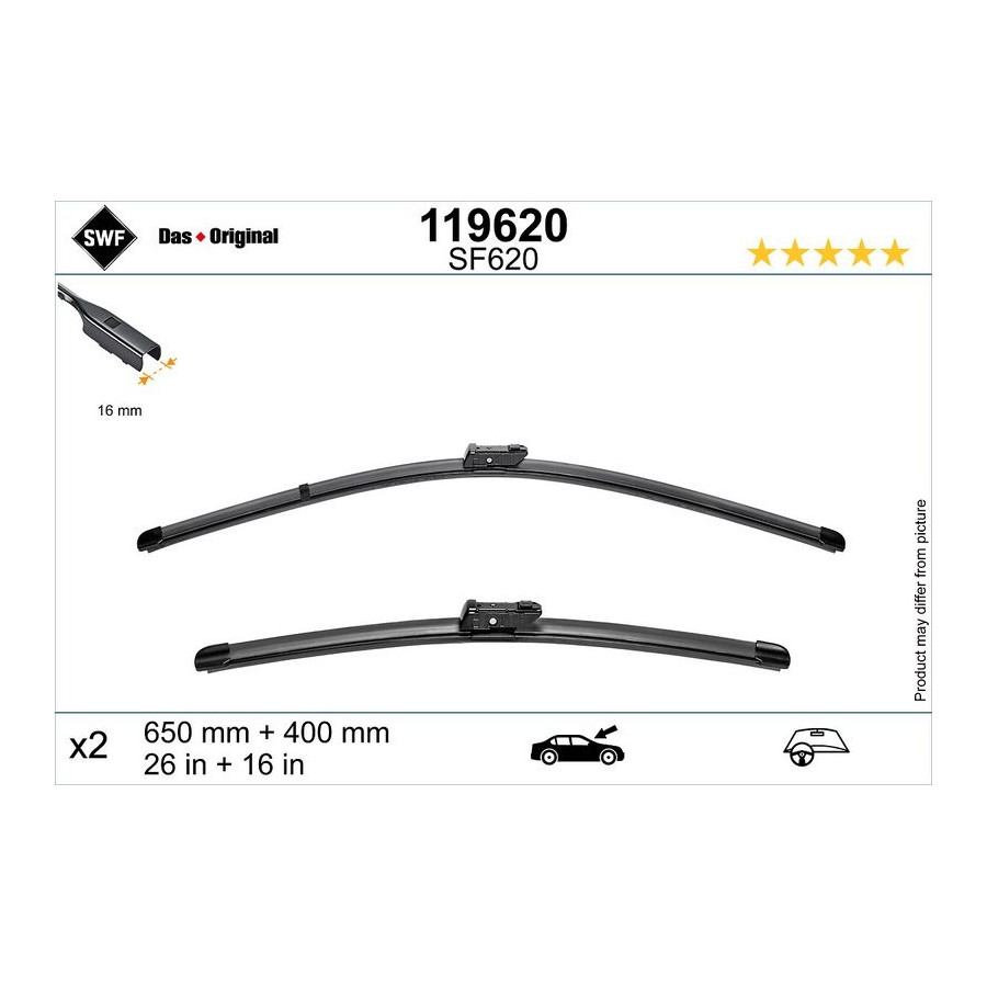 | Wiper blade type | Flat wiper blade |